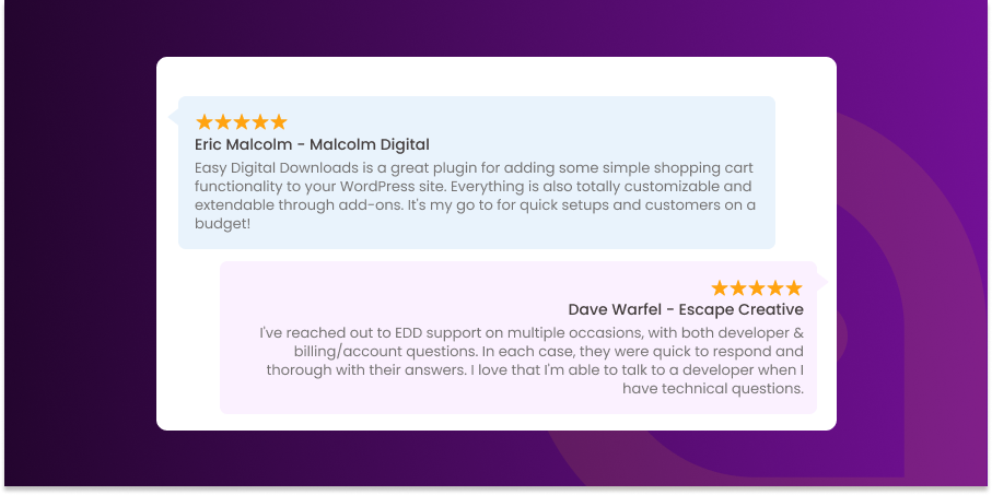 - EDD Reviews makes it easy for customers to leave reviews and ratings for your products. Then you showcase them across your marketing materials and product pages.
