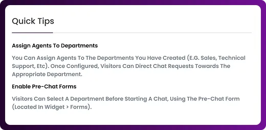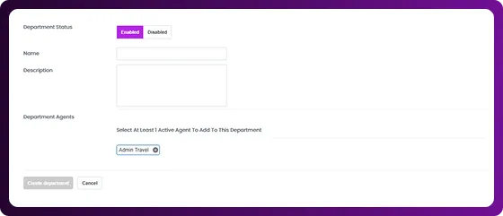 Organizing your agents into departments helps streamline workflows and ensures customer queries are directed to the right team. With Chattrik, you can easily add, manage, or disable departments directly from your dashboard. This allows you to define roles, assign agents, and improve response efficiency. Whether you’re setting up new teams or maintaining existing ones, managing departments in Chattrik is simple and designed to support your business needs.