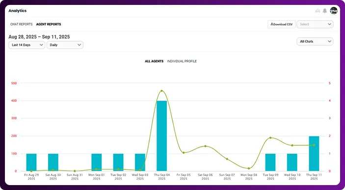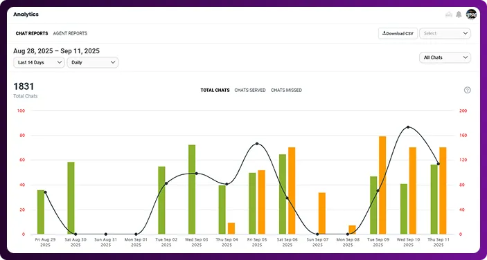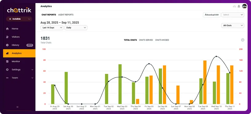 Chattrik’s Analytics feature provides a complete overview of customer interactions and agent performance. With easy-to-use Chat Reports and Agent Reports, you can measure efficiency, response times, and satisfaction ratings. Reports can be filtered daily, weekly, or monthly, and exported for deeper insights. Whether you want to track overall customer support performance or focus on individual agents, Chattrik makes analytics simple, organized, and effective for improving decision-making and optimizing team productivity.