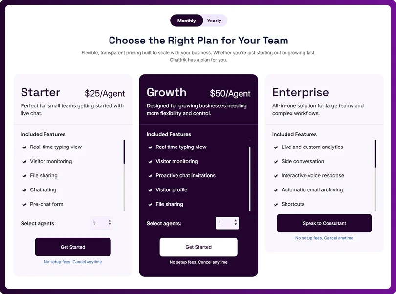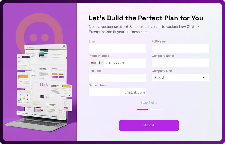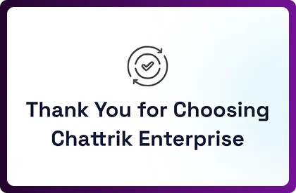 The Chattrik Enterprise Package is designed for businesses that need advanced tools, personalized features, and scalable solutions. Purchasing this package is quick and ensures a customized setup based on your company’s needs. By submitting essential details, verifying your email, and confirming your request, you’ll be guided through a smooth process. Chattrik’s team then follows up with a confirmation email to help you get started with your tailored Enterprise plan.